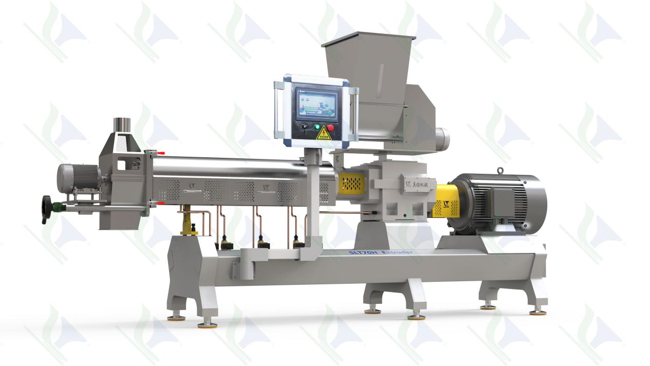 2. 高性能型:挤出机的螺杆和机筒均采用模块化设计,可根据原料特性和产品要求,自由组配螺杆内部结构及灵活选择机筒长度。功能强大,适用产品范围更广,可加工膨化零食、自热米饭、早餐谷物玉米片、植物蛋白肉、预糊化淀粉等多种产品。